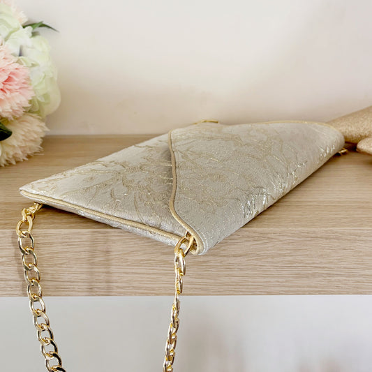Pochette mariage champagne brocart fleuri – Pochette mariée personnalisée