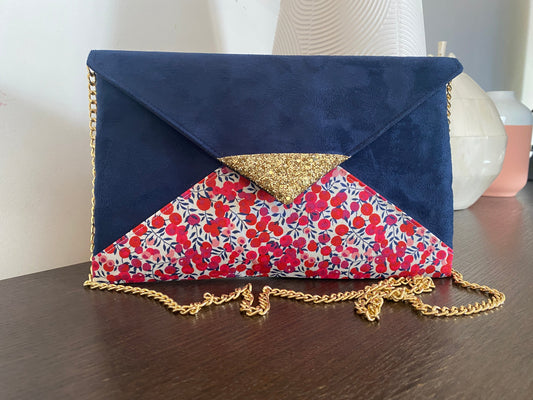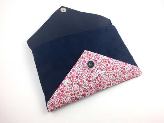 Pochette mariage bleu marine, en Liberty of London phoebe rose