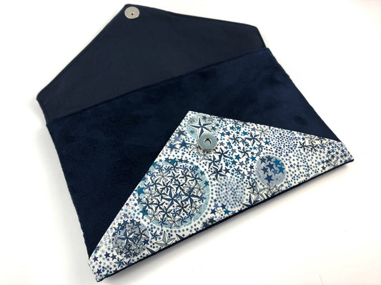 Pochette mariage bleu marine en Liberty of London adelajda bleu