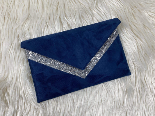 Sac pochette mariage bleu marine et paillettes bleu nuit