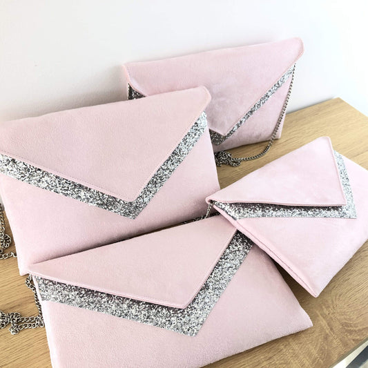 Sac pochette mariage rose fuchsia bleu marine paillettes dorées