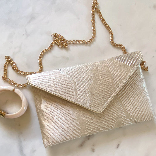 Sac pochette mariage écru, verte idéale pour mariage thème tropical chic