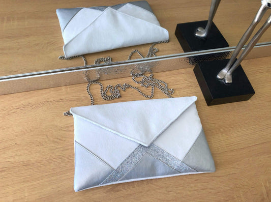Découvrez les pochettes de mariée blanche, beige ou écrue avec ou sans chaîne. Ces pochettes de cérémonie sont personnalisables avec le texte, date, prénoms, initiales ... de votre choix.