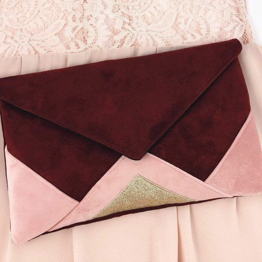 Pochette mariage rose et bordeaux, paillettes dorées