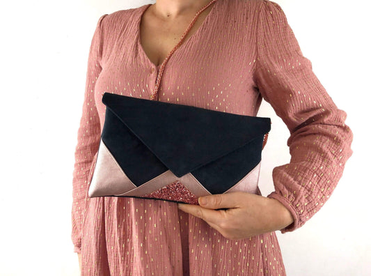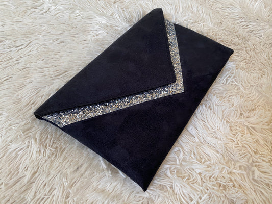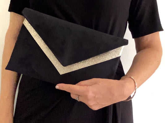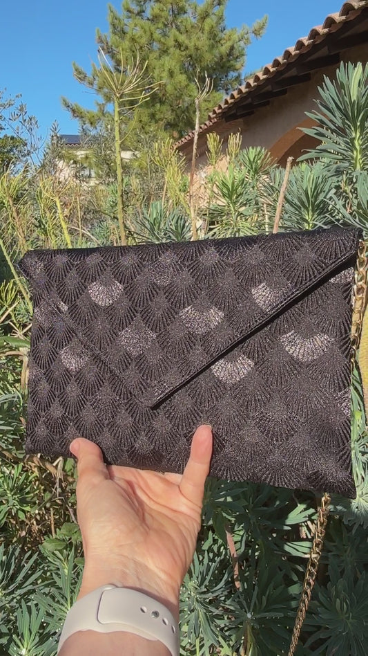 Pochette de soirée noire à paillettes dorées - pochette femme bandoulière noire